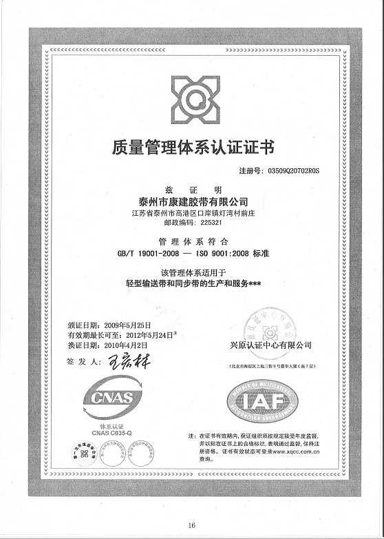 “康建”產(chǎn)品已通過ISO9001國際質(zhì)量體系認(rèn)證